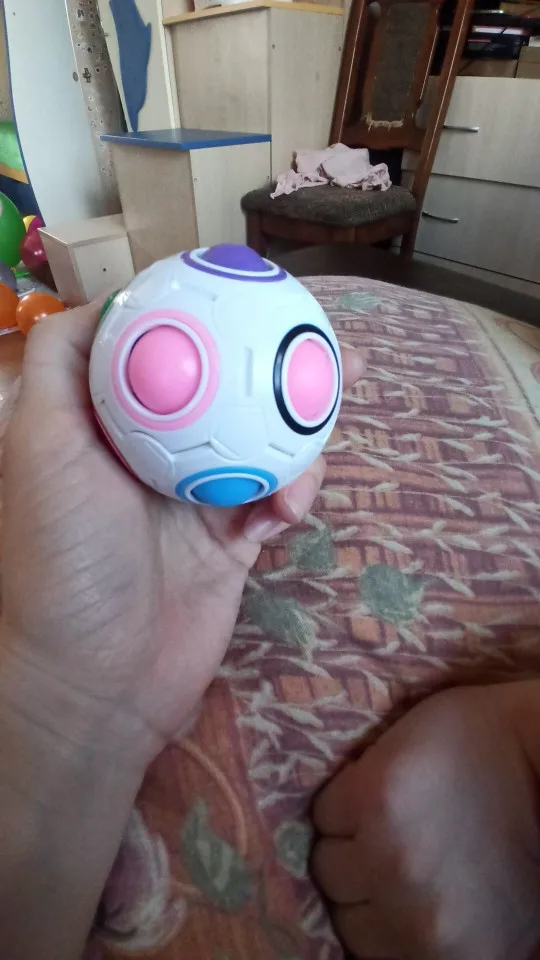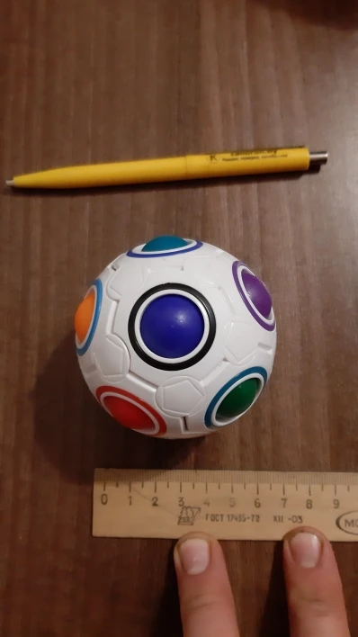 шар пришёл за месяц. но с браком цвета . две жёлтых ячейки, а должна быть одна жёлтая, вторая оранжевая. шары цветные не гладкие с заусиницами грубыми. в целом не плохой. одну звезду снимаю за брак. с продавцом не общалась ещё. но хочу написать о браке игрушки. а так рекомендую продавца.