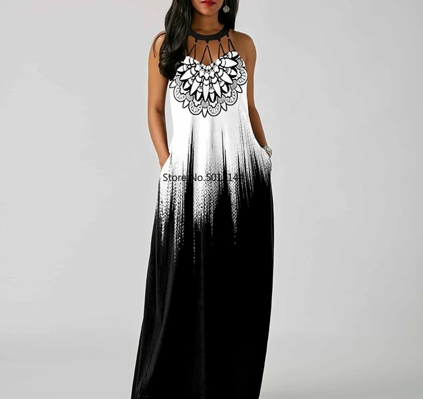 2021 летние пикантные туфли в африканском стиле на высоком каблуке с принтом без рукавов, с карманами размера плюс длинное платье