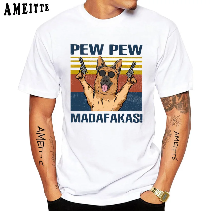 Винтажные немецкой овчарки пью футболка "Влюбленные" Новая мужская рубашка с коротким рукавом и собрать собака дизайн повседневные топы в стиле хип-хоп для мальчиков раннего возраста, белый принт футболка