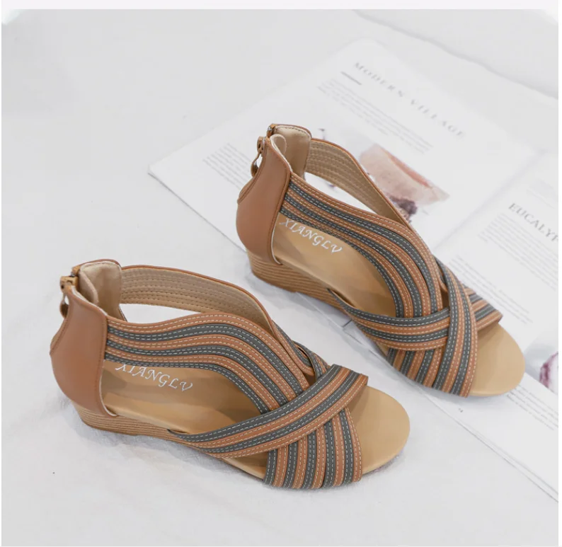 Женские босоножки на танкетке Simi, летние туфли на среднем каблуке в европейском стиле, повседневная обувь в римском стиле на молнии, новинка 2021