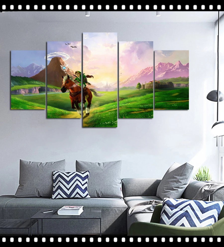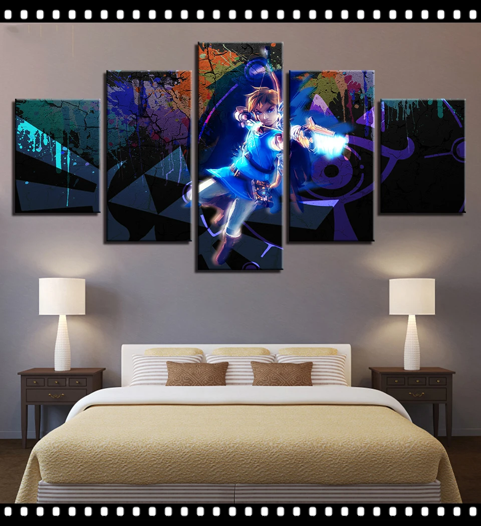 Холст без рамки 5 панелей Zelda Gamer аниме Куадрос настенные посте...