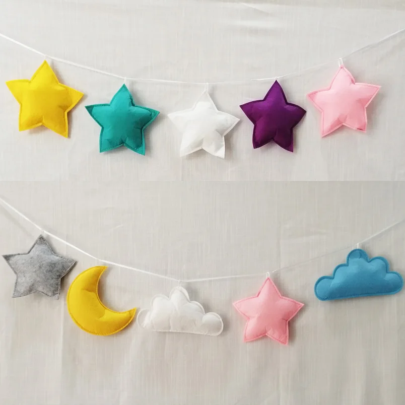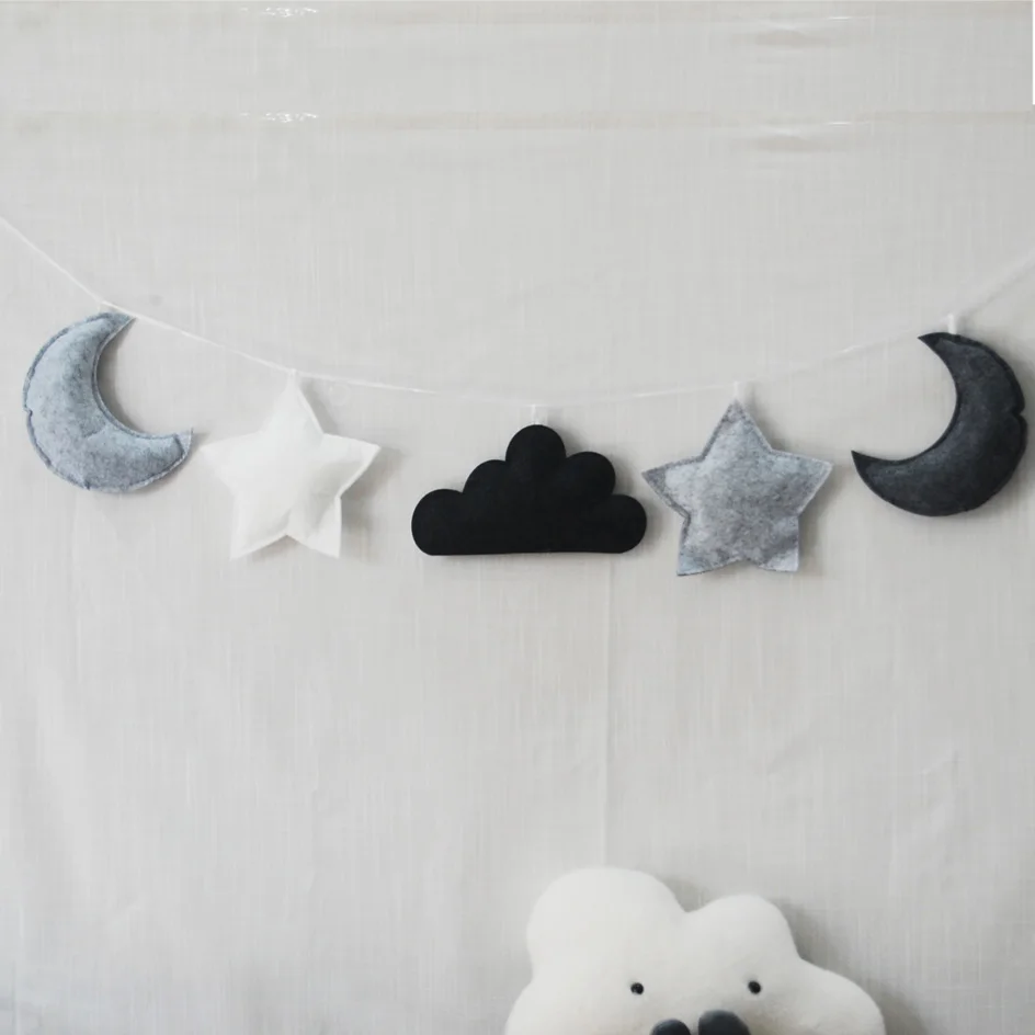 Скандинавская фетровая ткань, звездная луна, облако, гирлянда, банн...