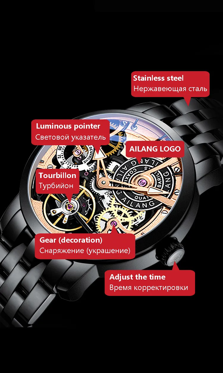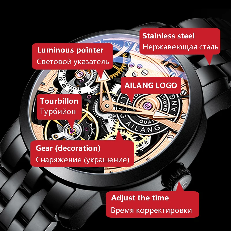 Часы AILANG, оригинальный дизайн, автоматические наручные часы tour...