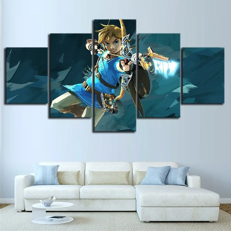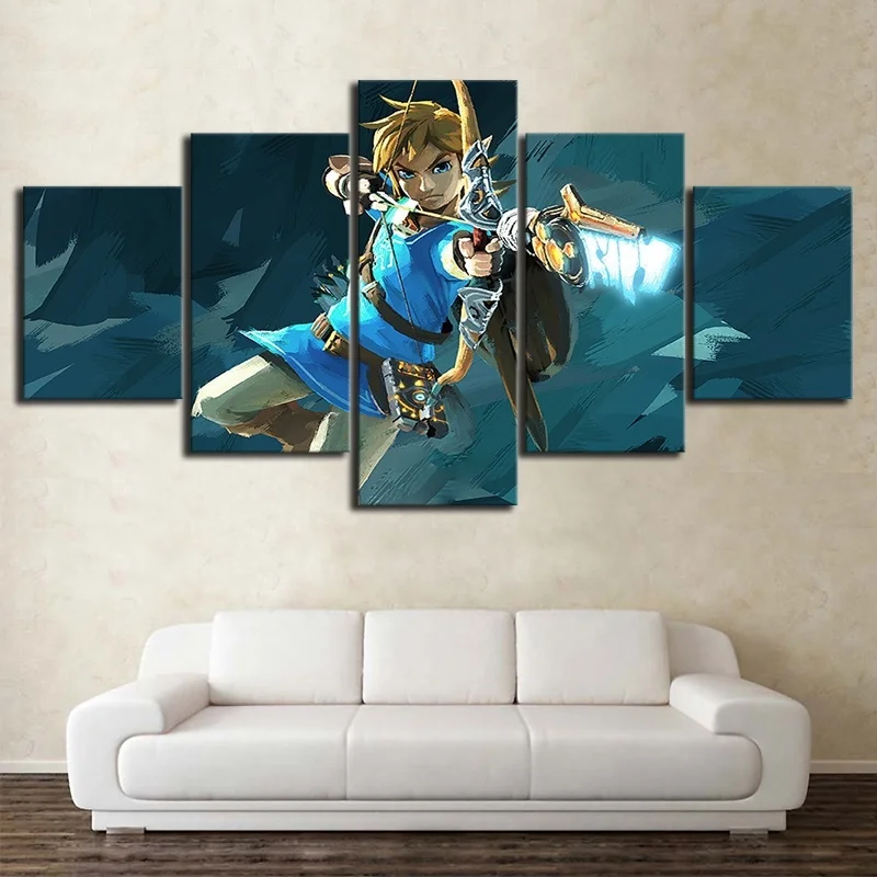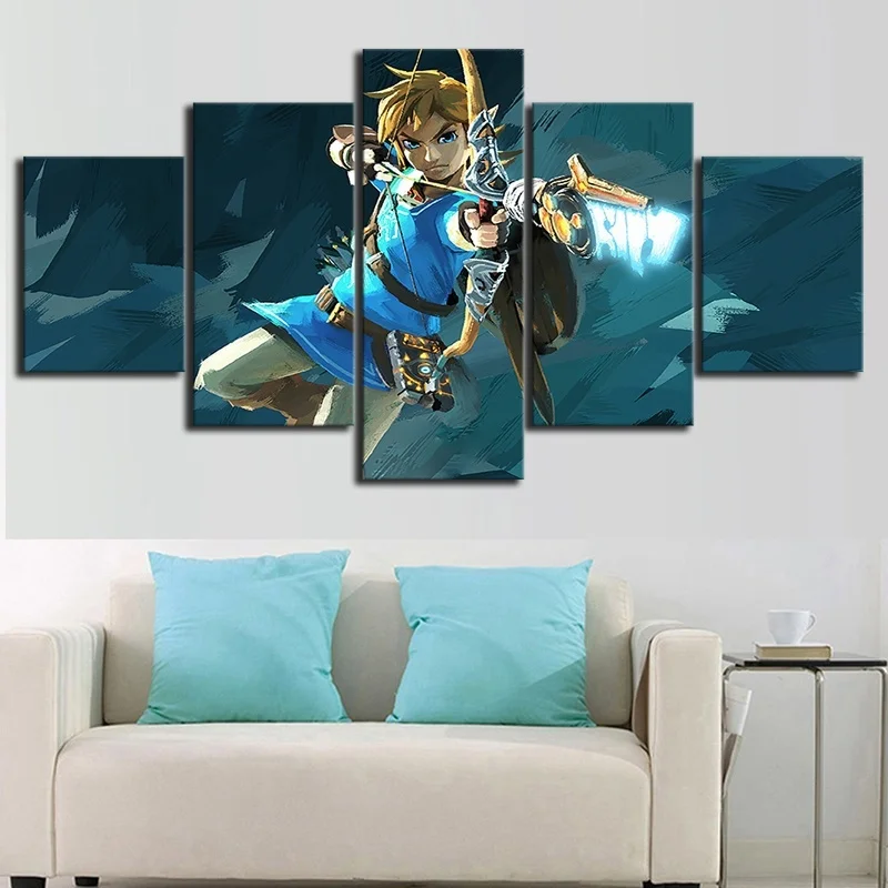 Холст без рамки 5 панелей Zelda Gamer аниме Куадрос настенные посте...
