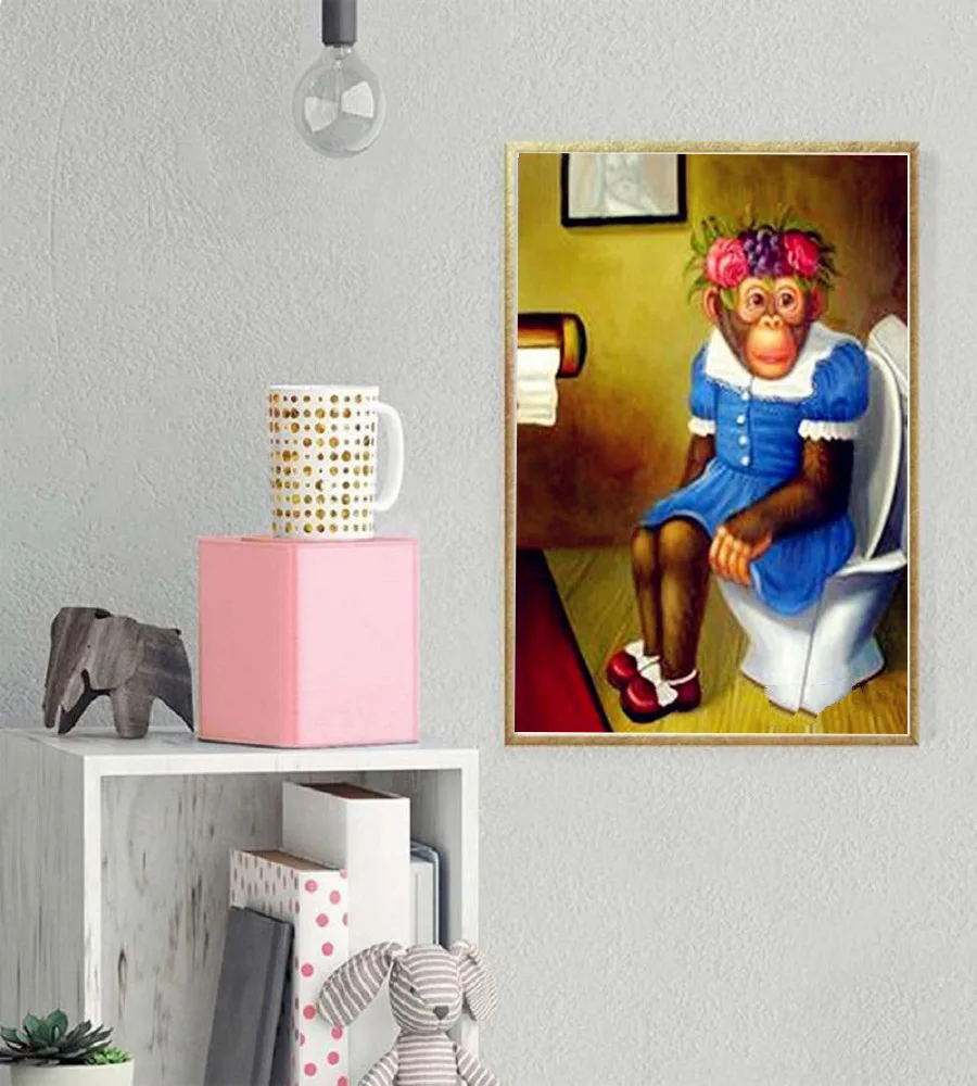 Полноразмерная Алмазная 5D картина сделай сам, мультяшная обезьяна, туалет, вышивка крестиком, мозаика, 3d Алмазная вышивка, домашний декор, подарки