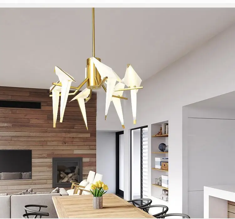 Люстра в скандинавском стиле с золотыми птичьими клетками, лампа для гостиной, спальни, кухни, столовой, бумажные аксессуары для дома