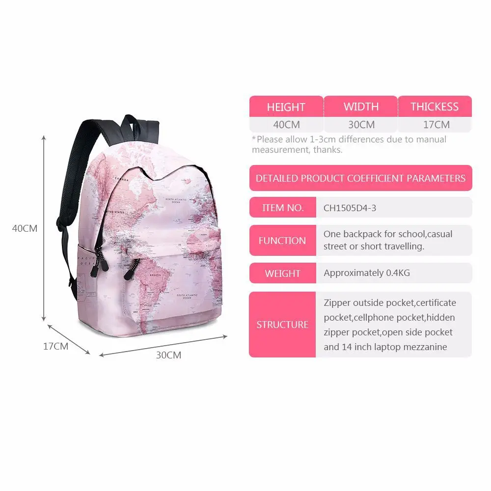 2 шт., рюкзак с принтом карты мира для девочек, сумка для ноутбука,...