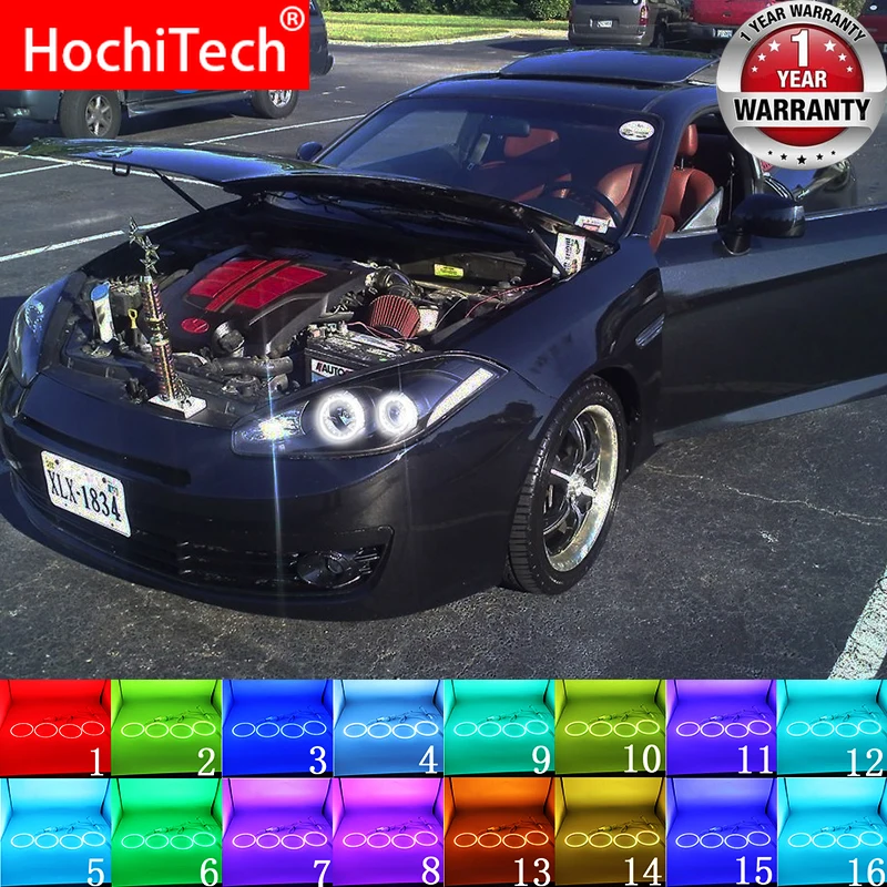 Фара Мульти-Цвет RGB светодиодный Ангельские глазки гало кольца дневные ходовые огни РФ Пульт дистанционного управления Управление для Hyundai Tiburon 2007 2008 GK FL2 аксессуары