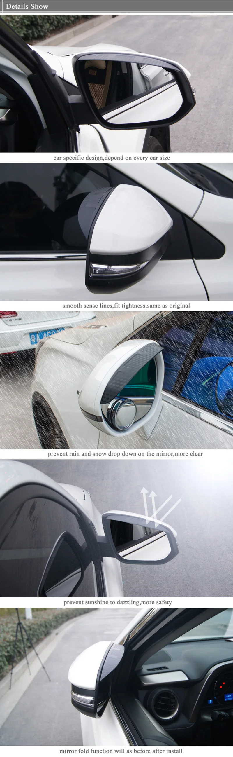 5) Удерживайте дождь, снег и пыль от падения на зеркало заднего вида. Повышает безопасность.