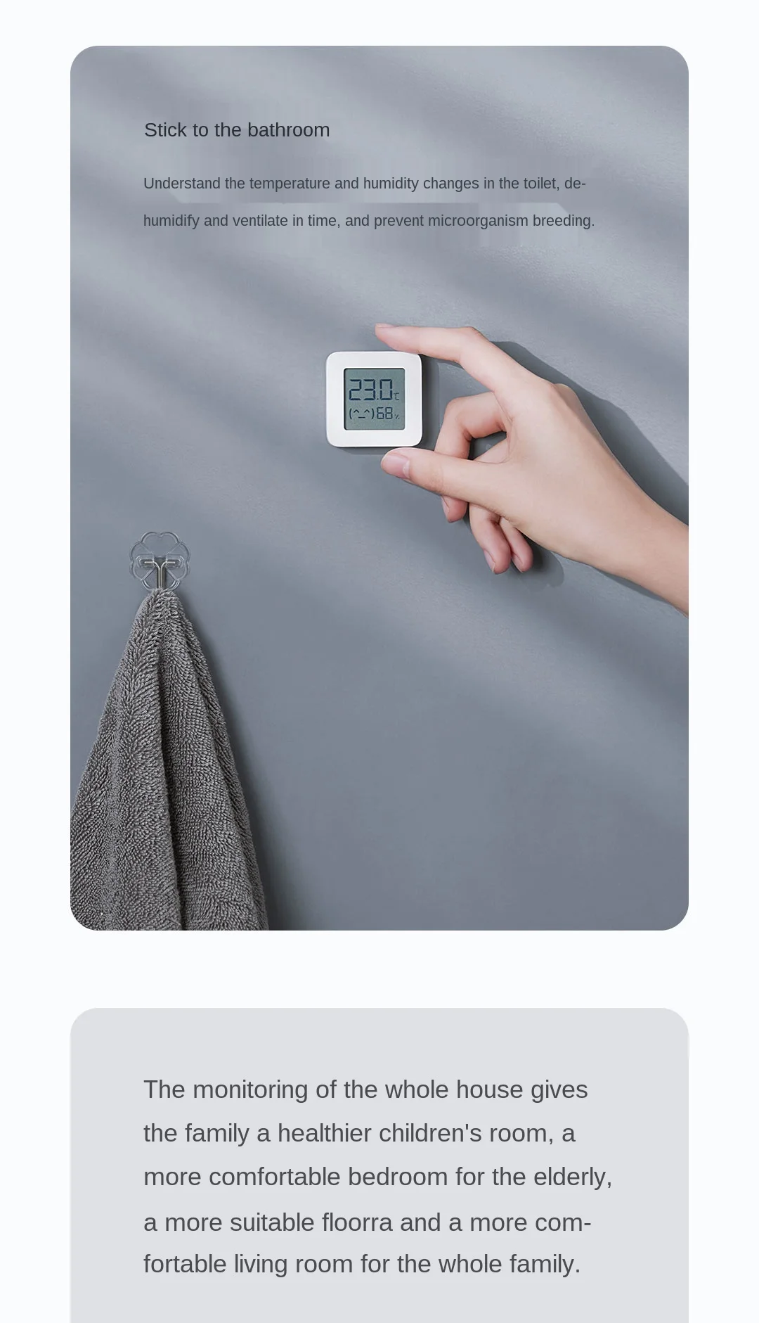 Можно разместить на столах, прикроватных столах, офисах; Также можно прикрепить к стене с помощью прилагаемого настенного термогигрометра,