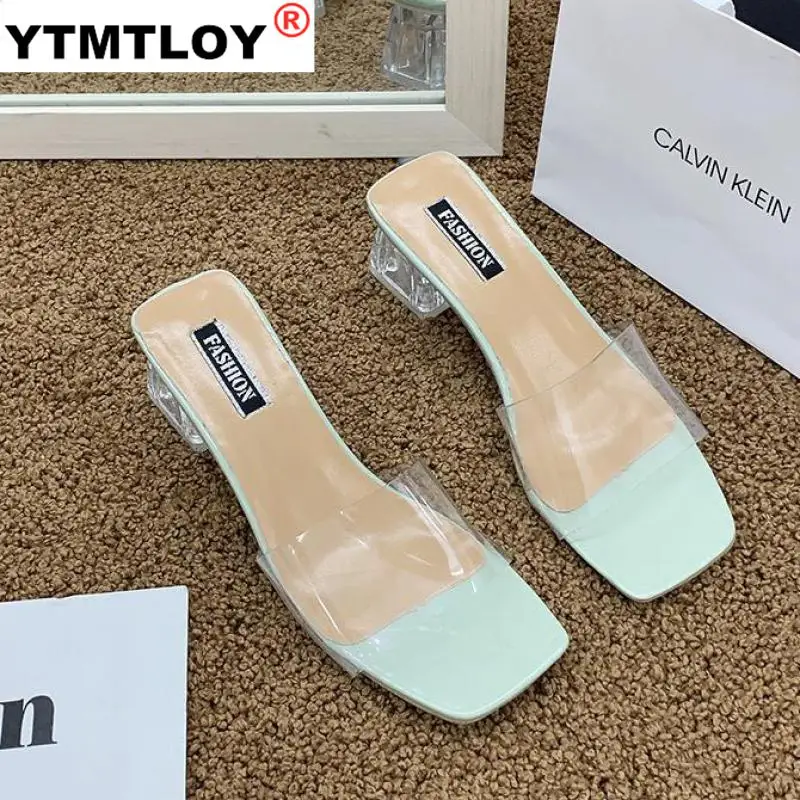 Женские дизайнерские прозрачные Шлепанцы из ПВХ, сандалии на высоко...