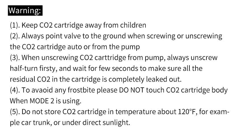 Примечание: картридж CO2 не входит в комплект!