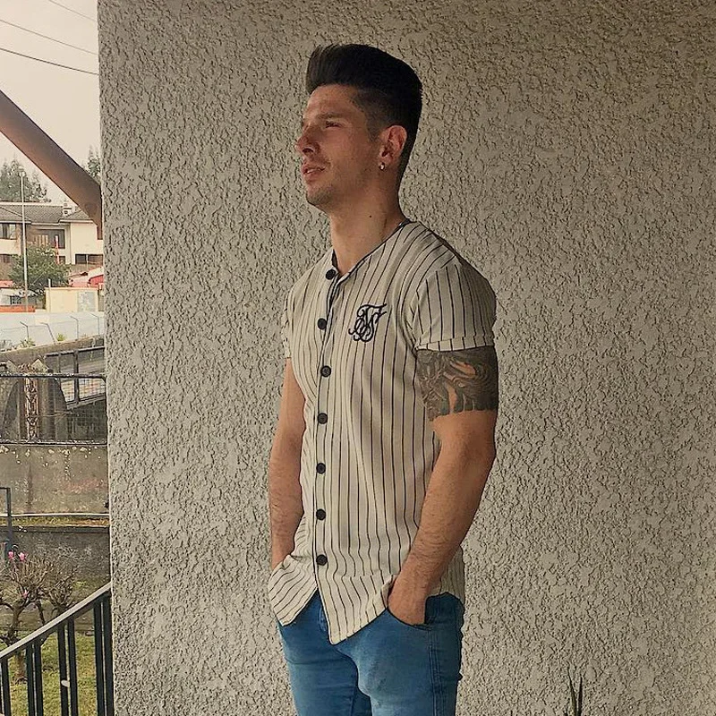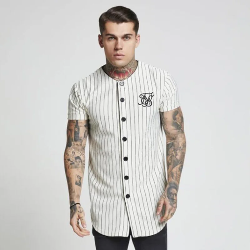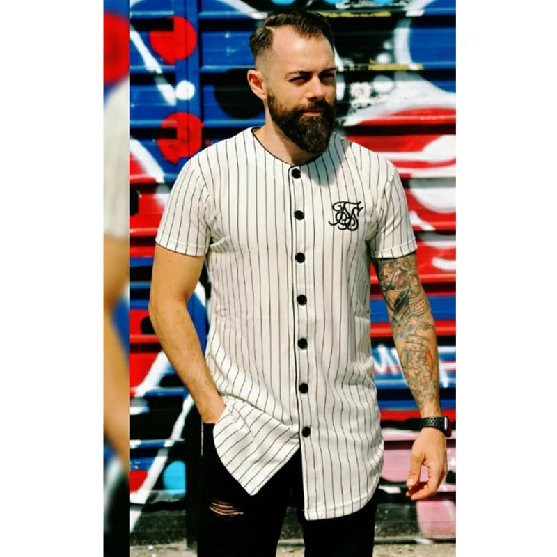 Модные летние 2018-2019 Мужская Уличная одежда в стиле хип-хоп, футболки Сик шелка с вышивкой бейсбольная вязаная куртка, рубашка в полоску для мужчин брендовая одежда