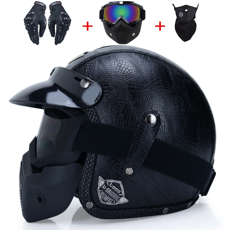 Второй мировой войны стиль открытым лицом Половина кожаный шлем Мото шлем ботинки в байкерском и винтажном стиле мотоботы мотоцикл
