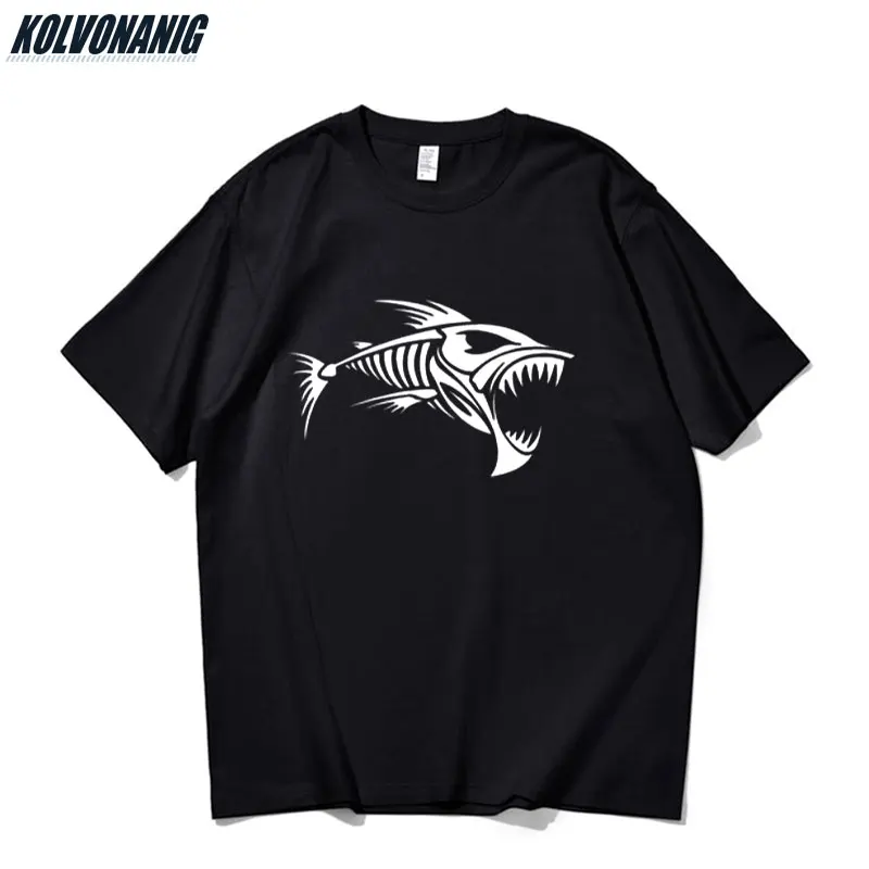 2021 летние череп в виде рыбного скелета s футболка для Мужская хлопковая футболка с коротким рукавом, детское платье с круглым вырезом, Одежда Harajuku футболки с аниме рисунком