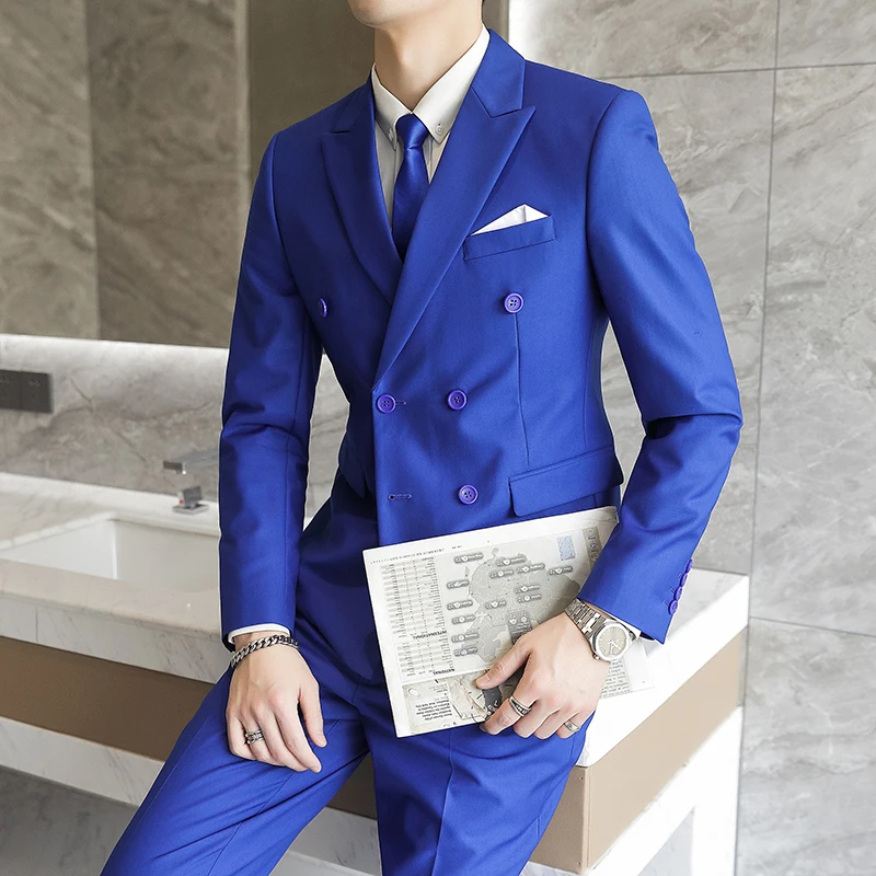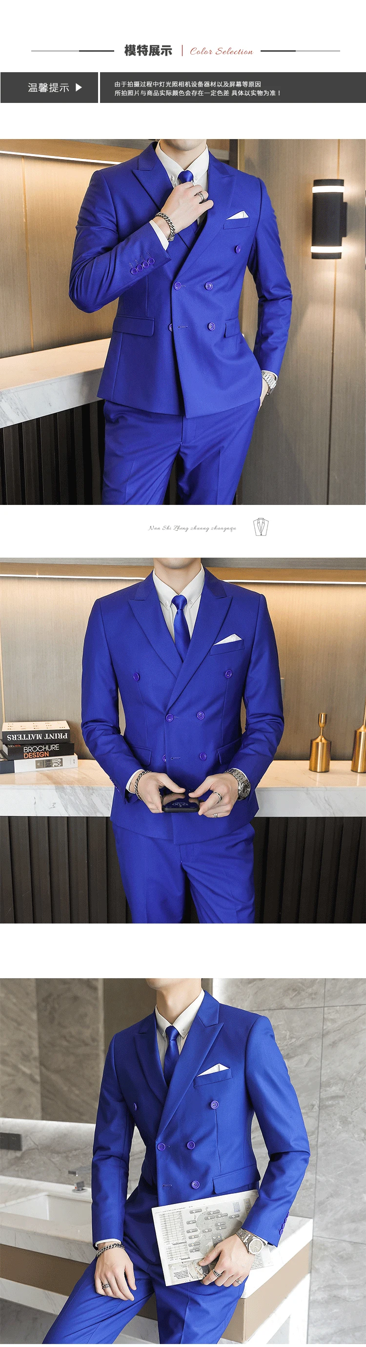 Мужской повседневный эксклюзивный деловой костюм, двубортный пиджак...