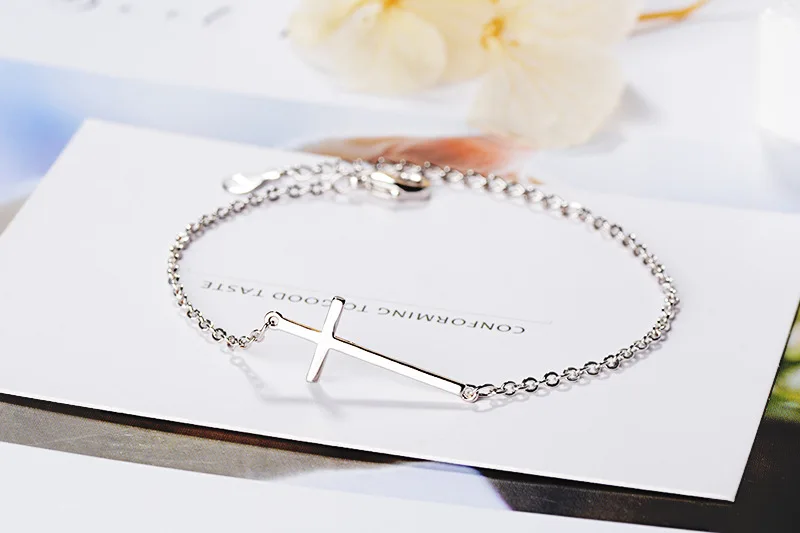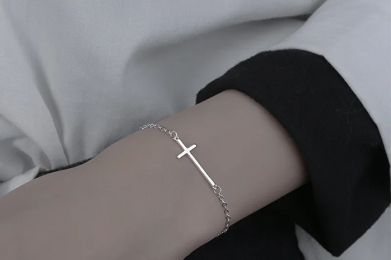 925 серебряный крест браслет для женщин, браслет с подвеской на зестежке с серебро 925 ювелирных изделий цепи Парные браслеты на день рождения вечерние