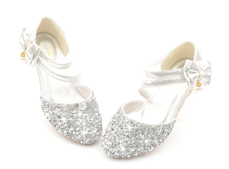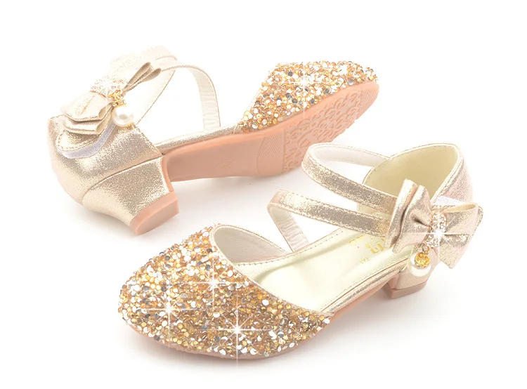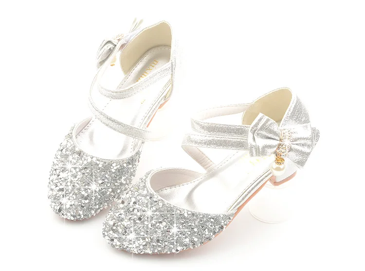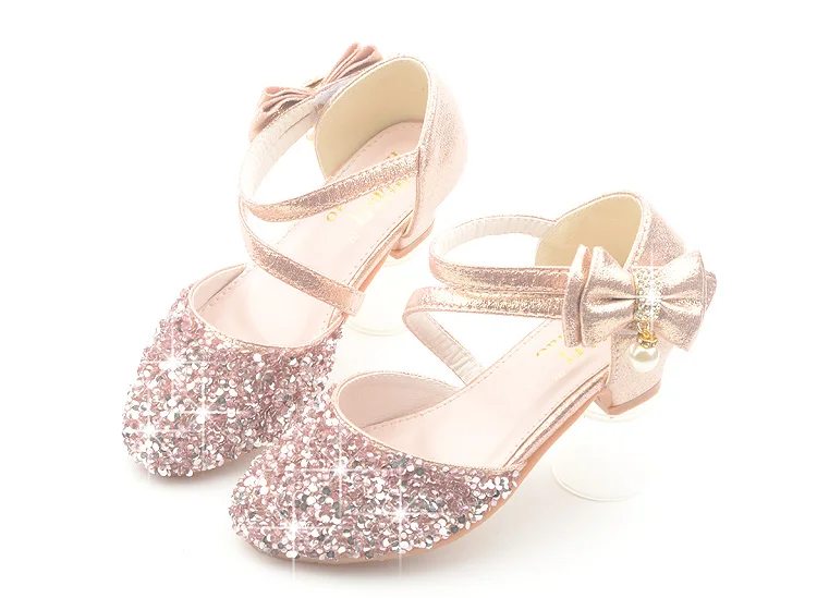 Детские босоножки на высоком каблуке, туфли принцессы для девочек, блестящие босоножки с бантом на высоком каблуке, Классические Вечерние туфли, Размеры 26-36, 2021