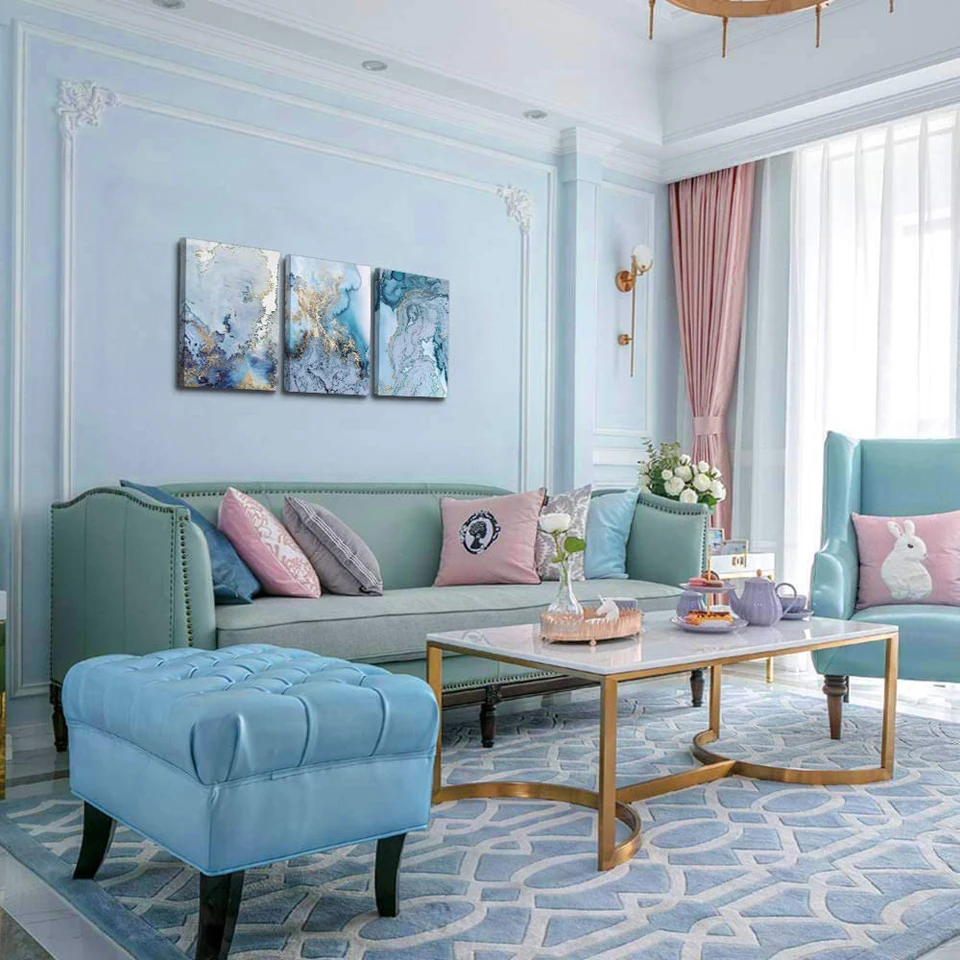 Полная квадратнаякруглая Алмазная вышивка, золотые и синие Акварель...