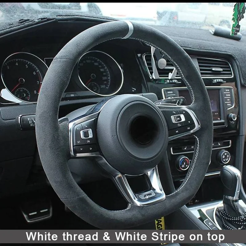 Чехлы рулевого колеса автомобиля DIY ручной работы мягкая черная замша для Volkswagen Golf 7 MK7 GTI R VW Polo Scirocco 2015 2016