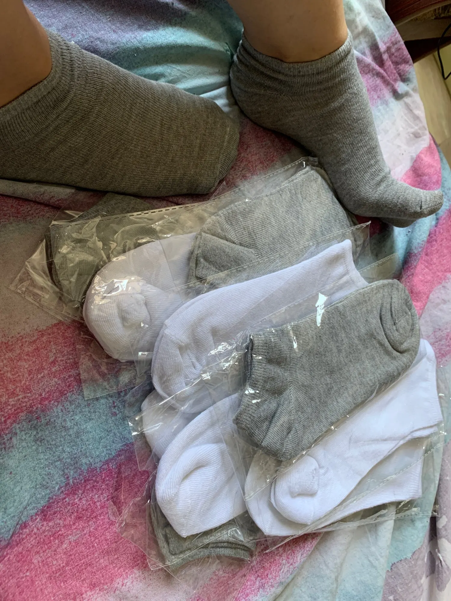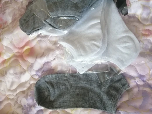 Носочки действительно просто отличные,пришло четко как и заказывала ,пятьтесь белых и пять пар серых,на мою ногу 39 размер(25см) сели вообще идеально. Я очень довольна,даже если носится будут недолго ,то за такую цену все равно супер