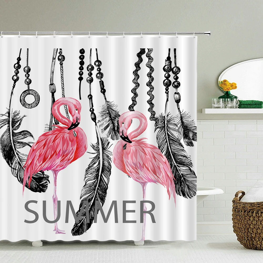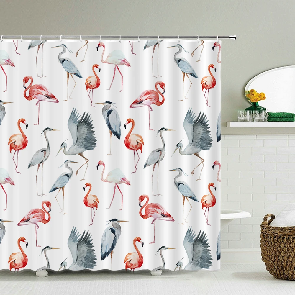 Водонепроницаемая занавеска для душа в ванной, с фламинго, занавеска для ванной из полиэстера, занавеска с цветочными листьями, занавеска для ванной с принтом, домашний декор