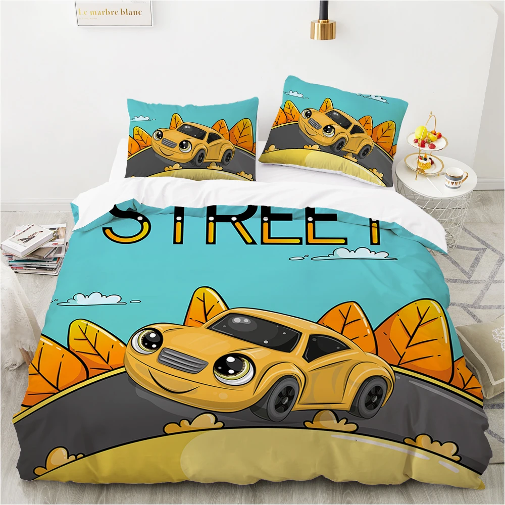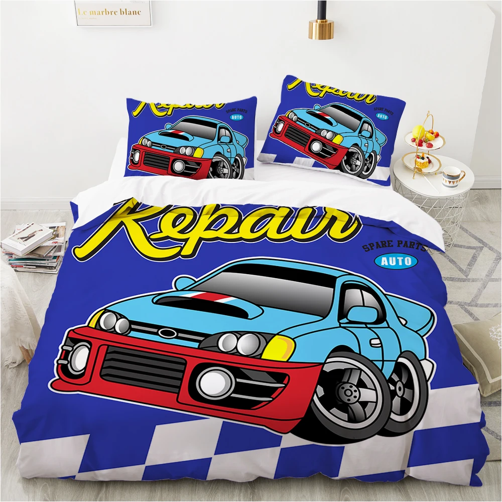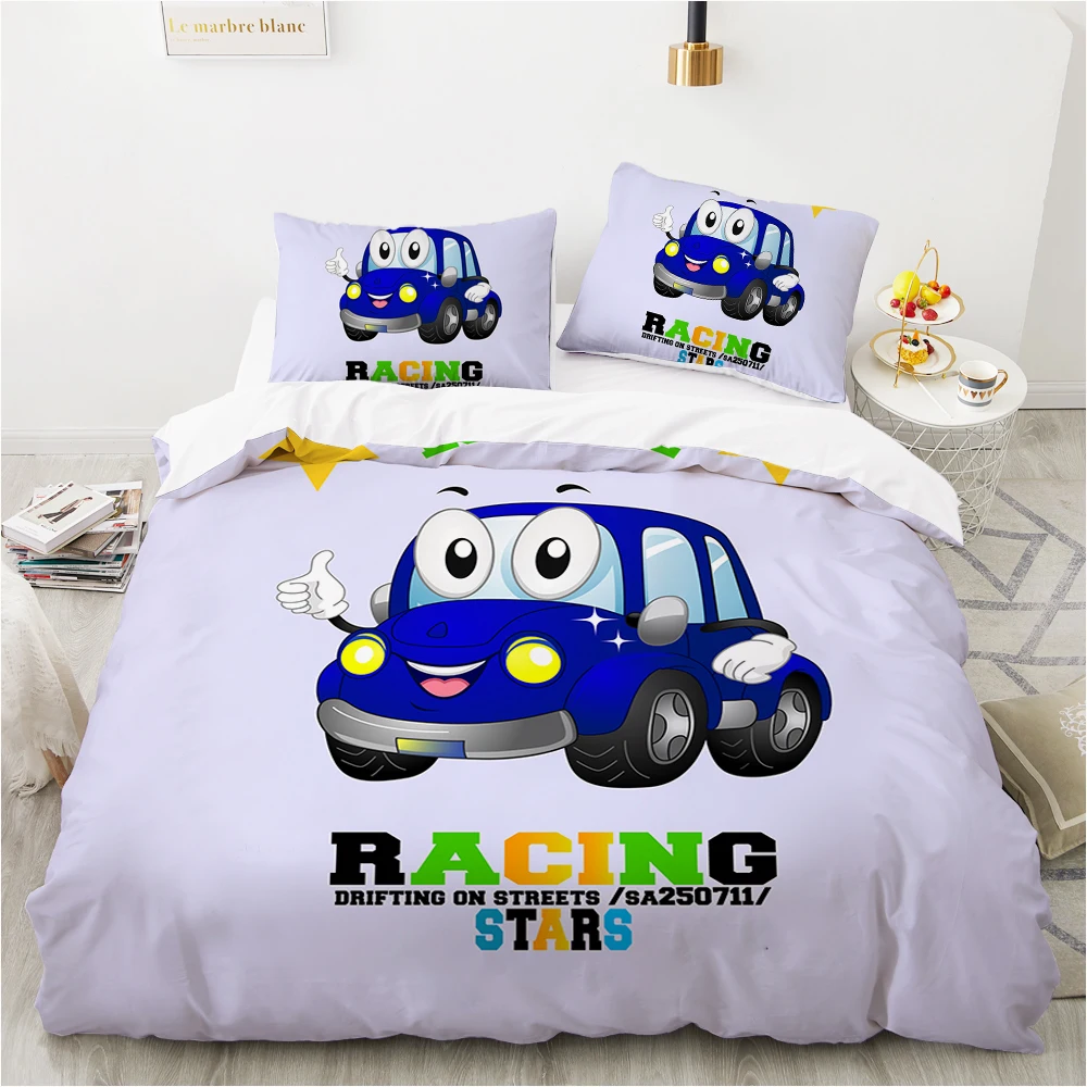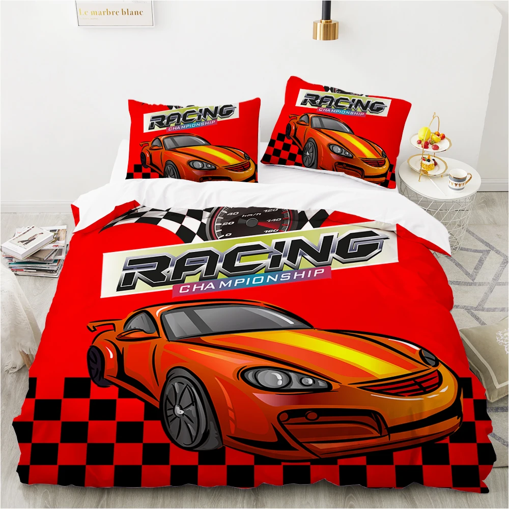 Постельное белье Twin size, пододеяльник 140x200, 2 сп, мультяшный Комплект постельного белья для мальчиков, для дома, гоночный автомобиль