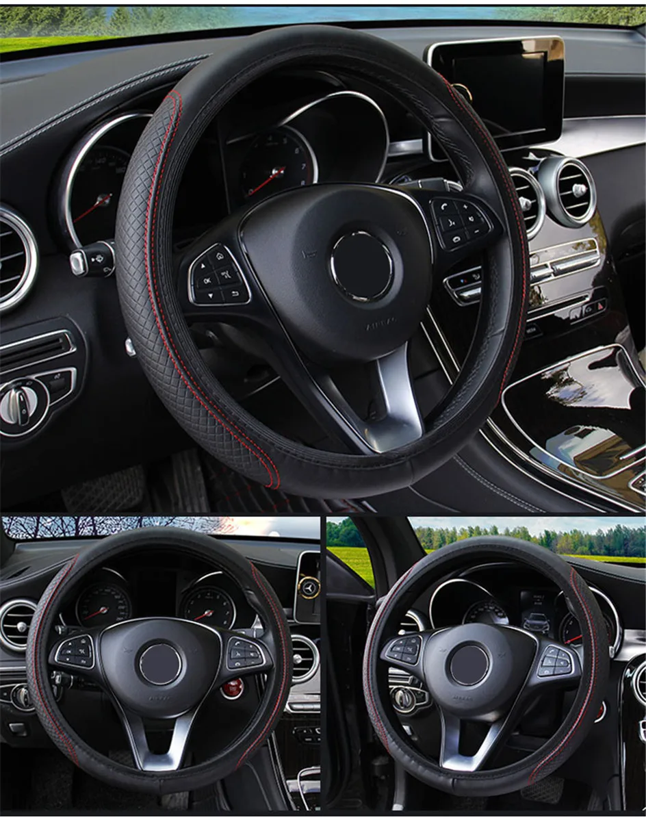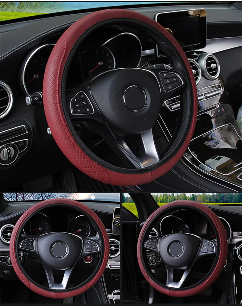 Дышащие кожаные противоскользящие аксессуары чехол рулевого колеса ...