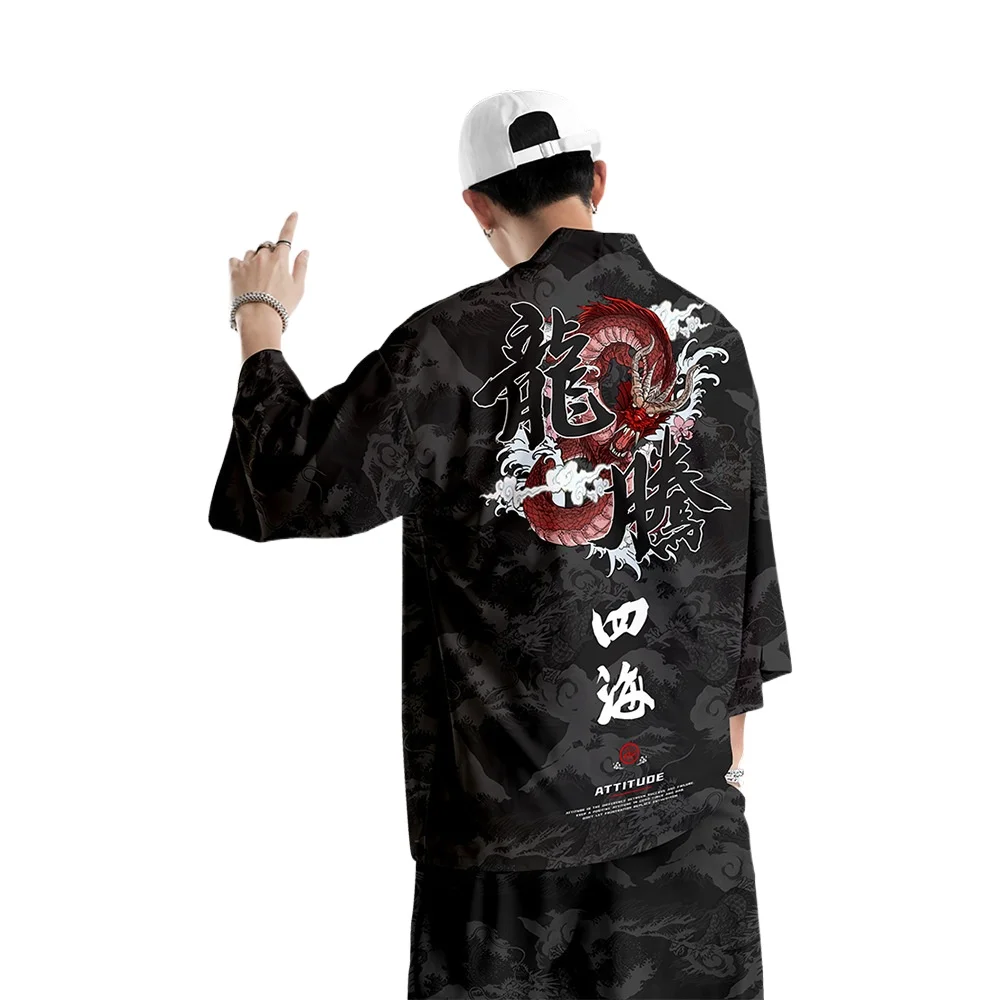 Костюм-двойка Женский, мужской, Свободный кардиган в японском стиле для косплея в стиле юката, кимоно и штаны в стиле Харадзюку, размера плюс, S-6XL, 5XL, 4XL