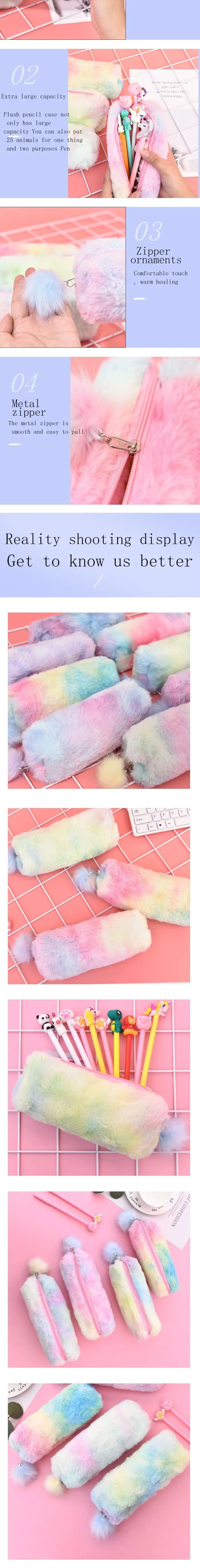 Кавайный чехол для карандаша градиентный цветной плюшевый чехол для...