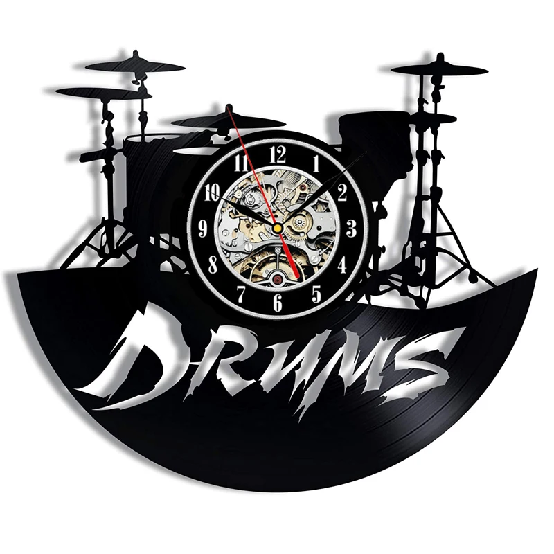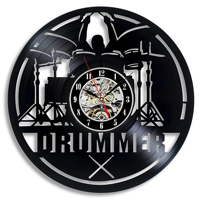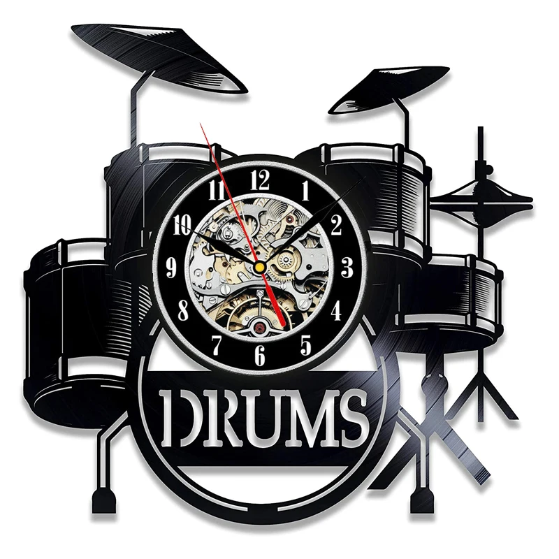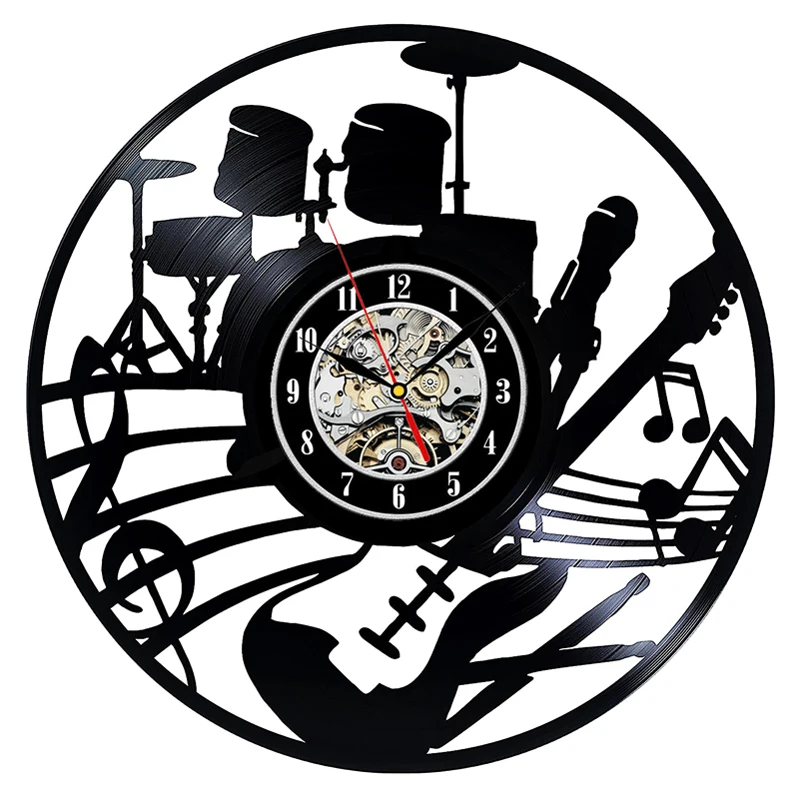 Виниловые настенные часы на гитарных барабанах, светодиодный винтажный 3D виниловый пластырь, Настенный декор, музыкальная тема, виниловые часы, настенные часы