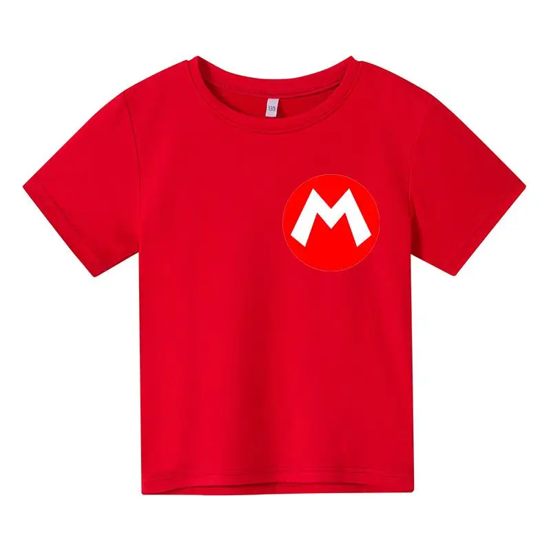 Футболки из чистого хлопка с принтом Марио для мальчиков и девочек,...