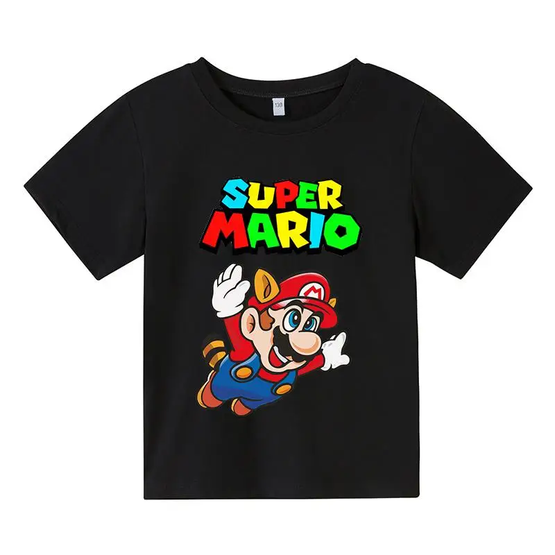 Новинка 2021, летняя футболка в стиле унисекс, с рисунком, из мультфильма Супер Марио, для мальчиков и девочек, детская одежда для подарка на день рождения, футболка