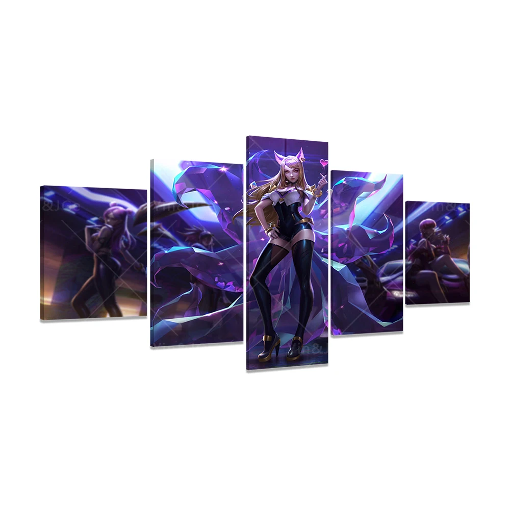 Настенное искусство Kda All Out Evelynn HD печать 5 шт. Ahri картины холст домашний декор видео игра Модульная картина рамка для гостиной