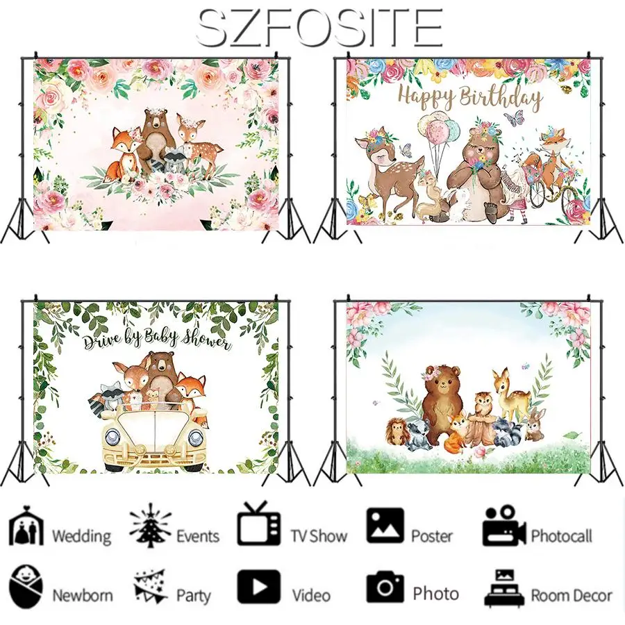 Виниловый фон для детской фотосъемки с изображением мультяшных цветов льва слона медведя животных