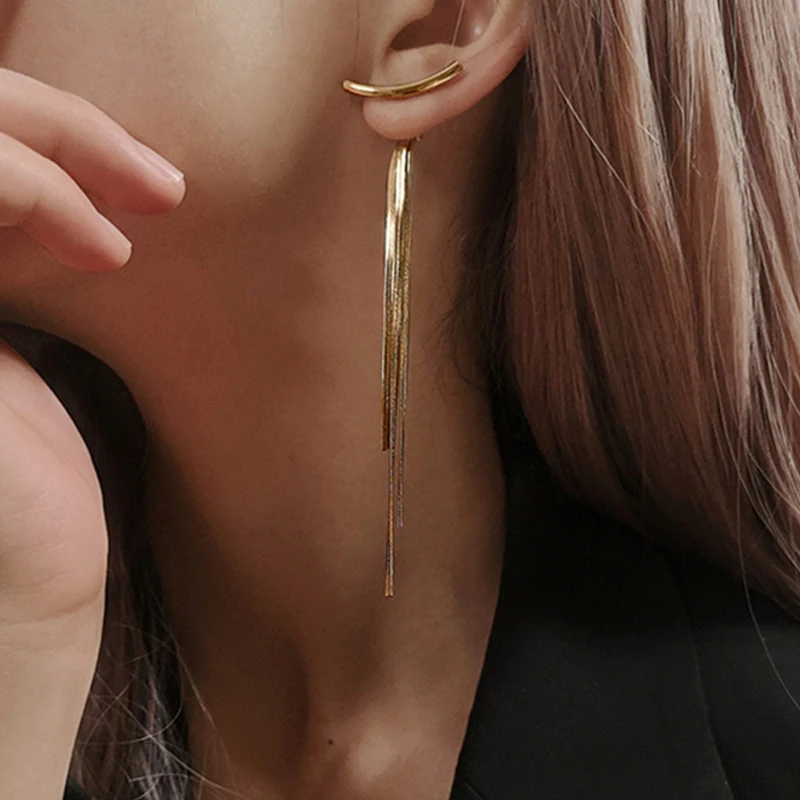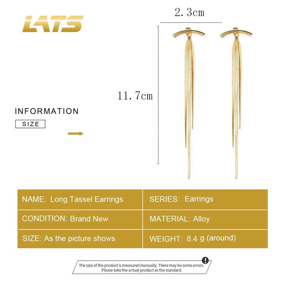 Женские Висячие сережки с кисточками LATS 2021, Винтажные серьги золотистого цвета с длинной нитью, корейские геометрические серьги с глянцевой дугой, модные ювелирные изделия