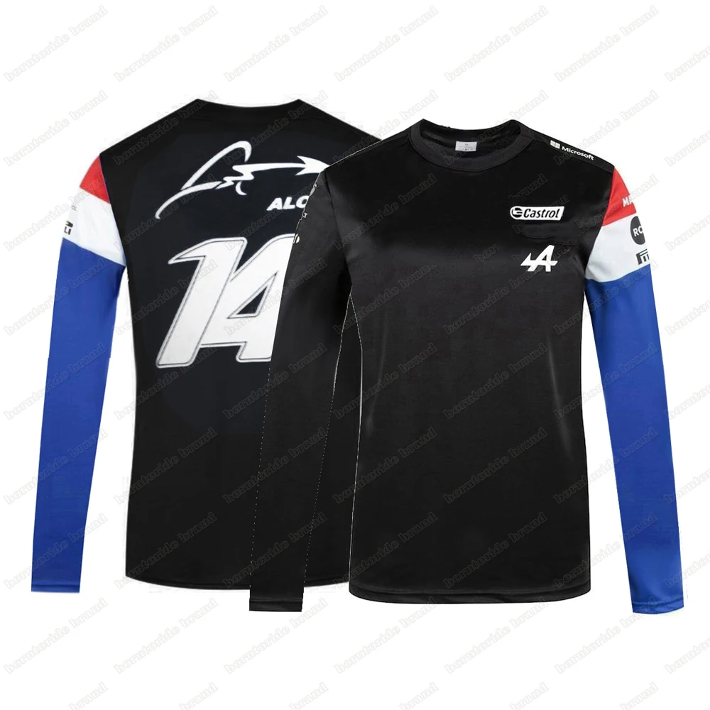 Новинка 2021, футболка для гоночного автомобиля Alpine F1 Team Motorsport, синяя, черная, дышащая футболка Teamline с длинным рукавом, рубашка, одежда