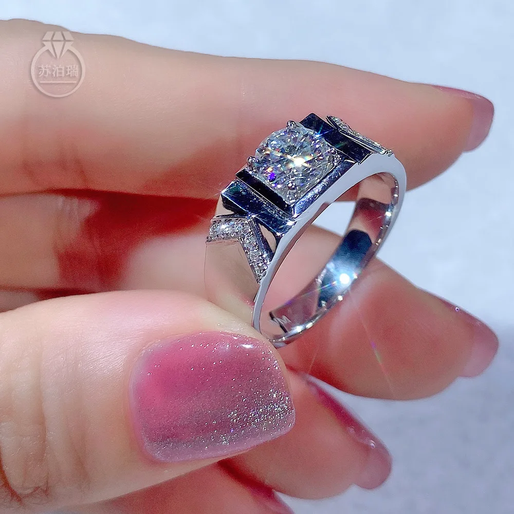 1-3CT кольцо из настоящего муассанита для мужчин, классическое прос...
