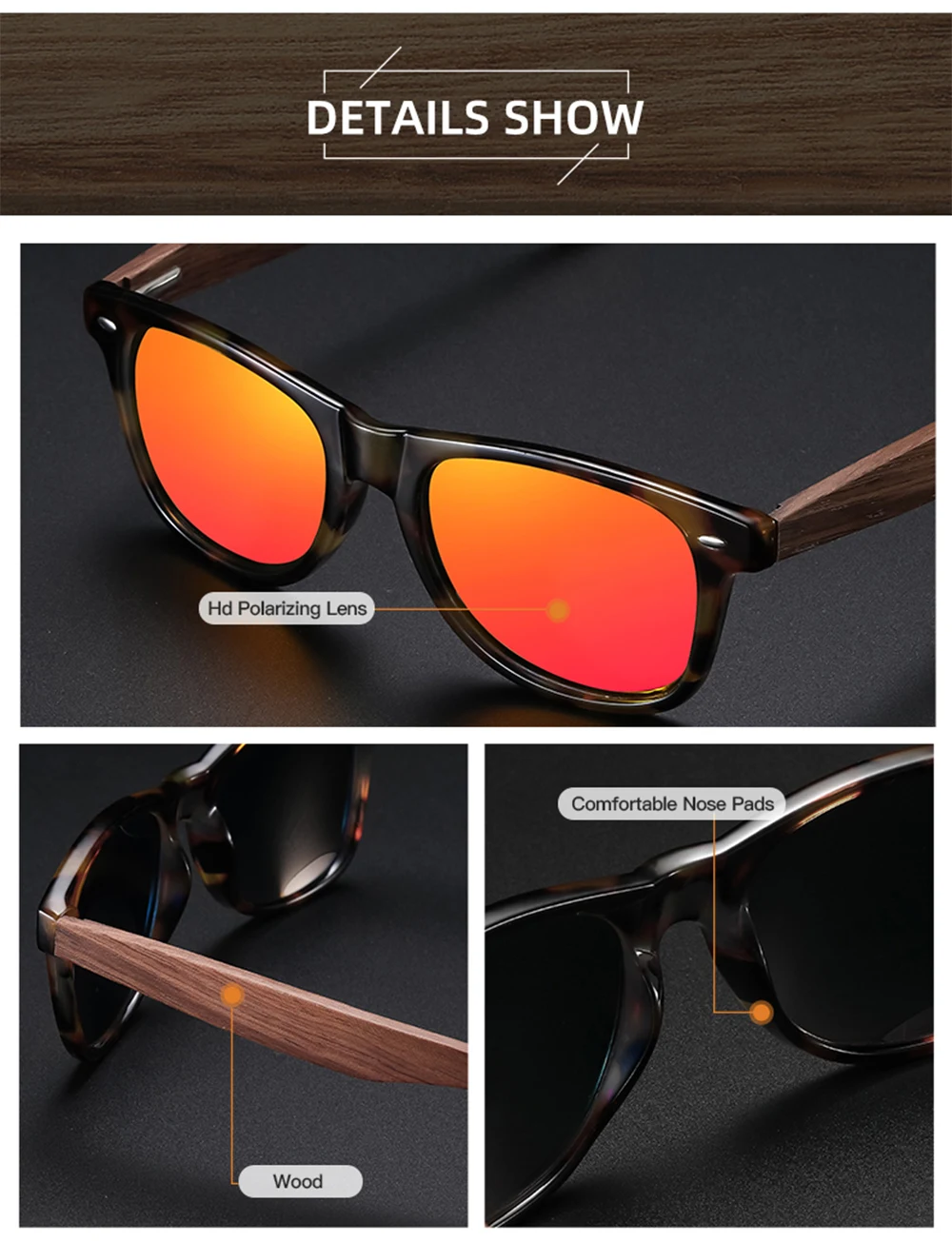 Очки солнцезащитные EZREAL S5030 мужскиеженские деревянные, модные ...