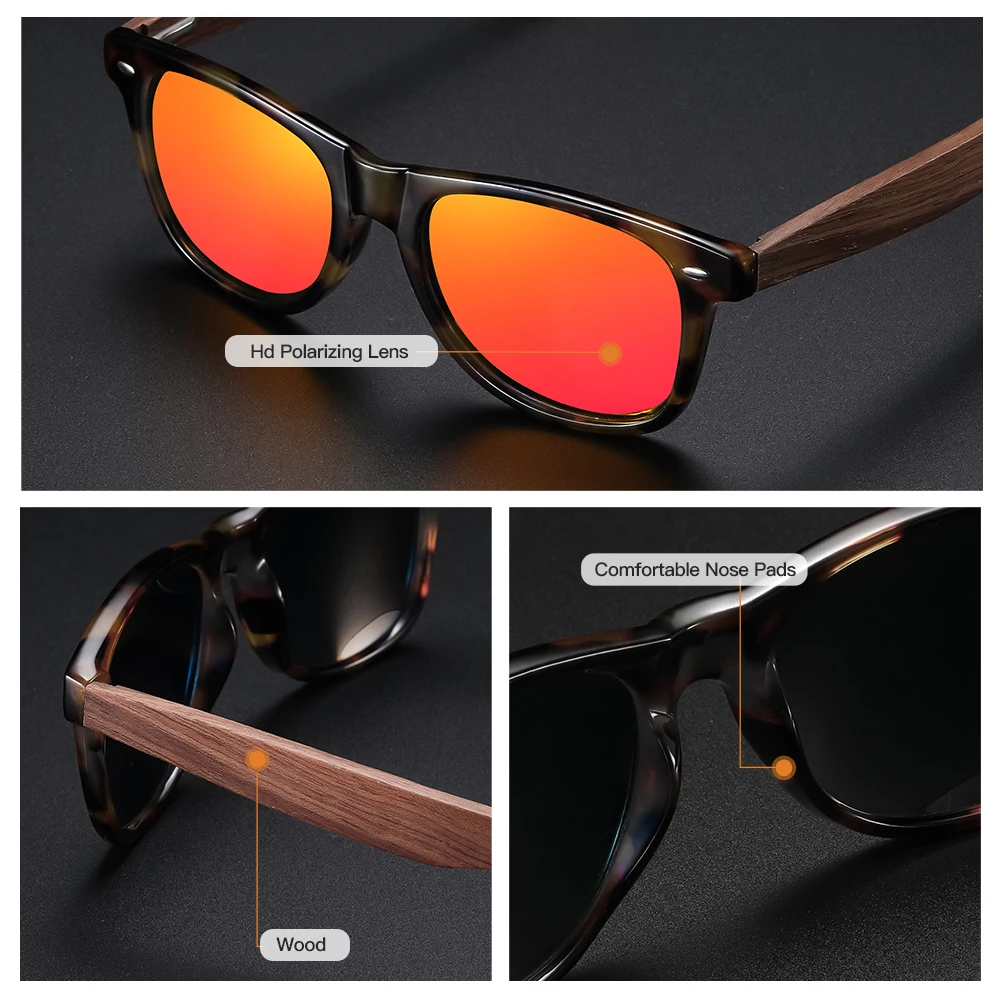 EZREAL Новые поступления черные деревянные поляризованные солнцезащ...
