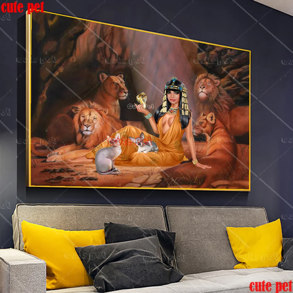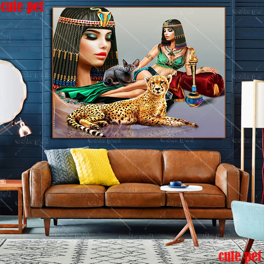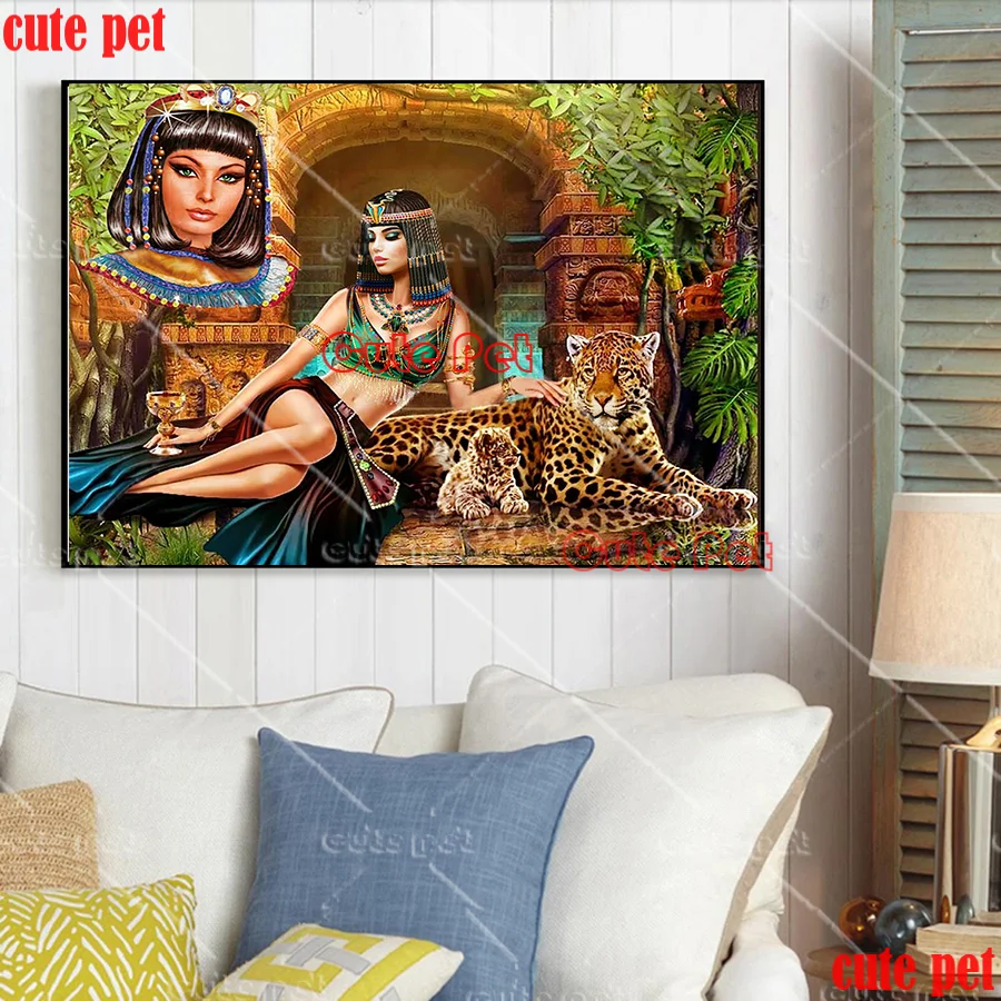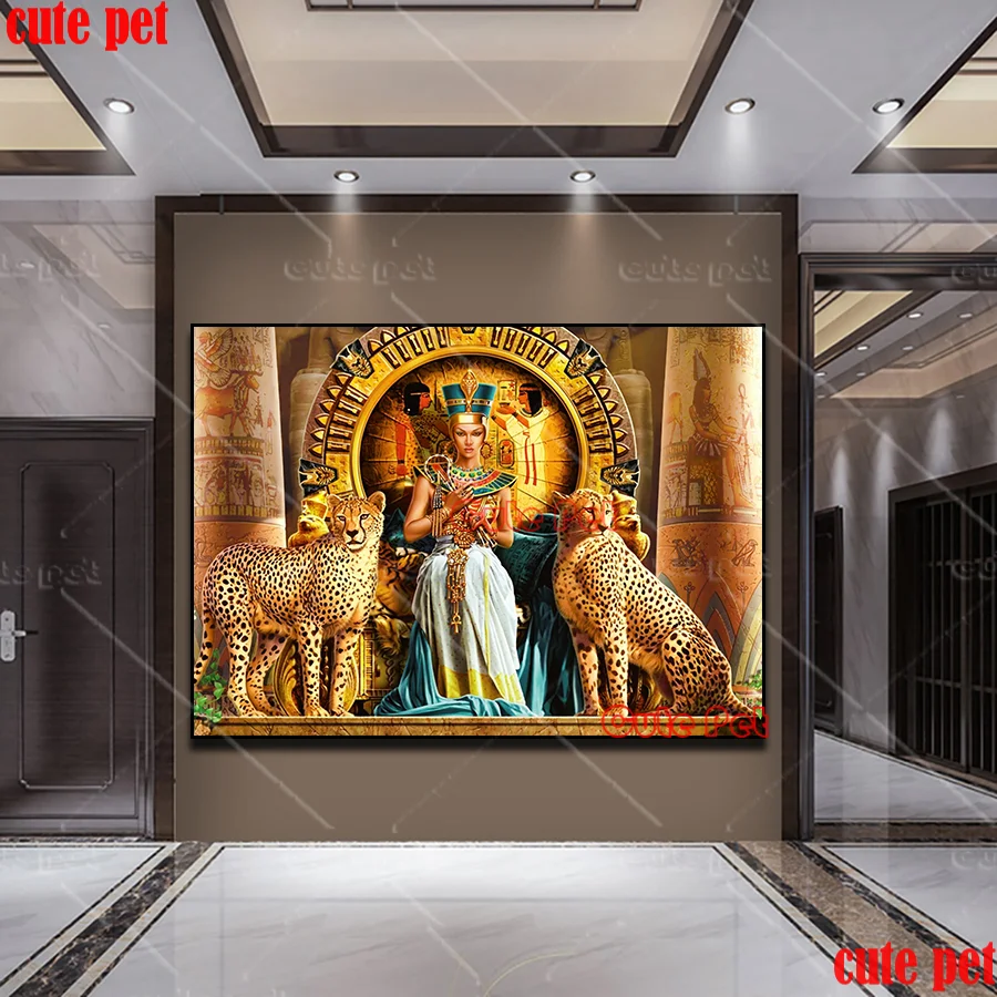 Алмазная 5D Вышивка сделай сам, Набор для вышивки крестиком с клеопатрой, мозаикой из Египта, королевы, тигра, собаки, леопарда, льва
