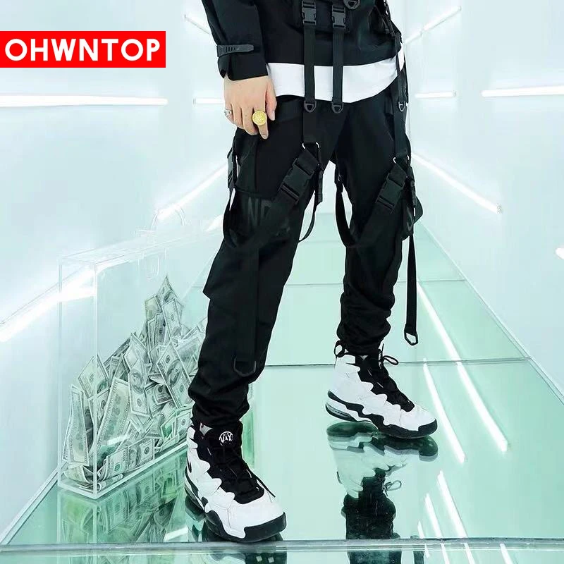 Мужские джоггеры с лентами и карманами, шаровары-карго с множеством пряжек, уличная одежда 2019, мужские повседневные тренировочные брюки в стиле хип-хоп на осень, мужские брюки