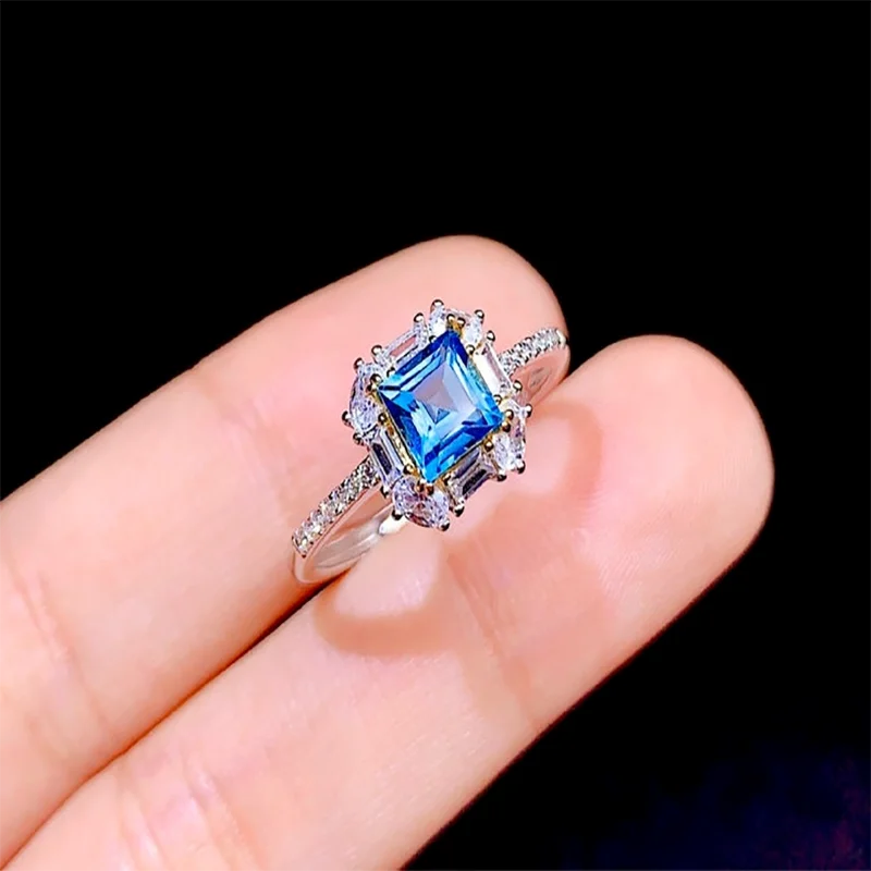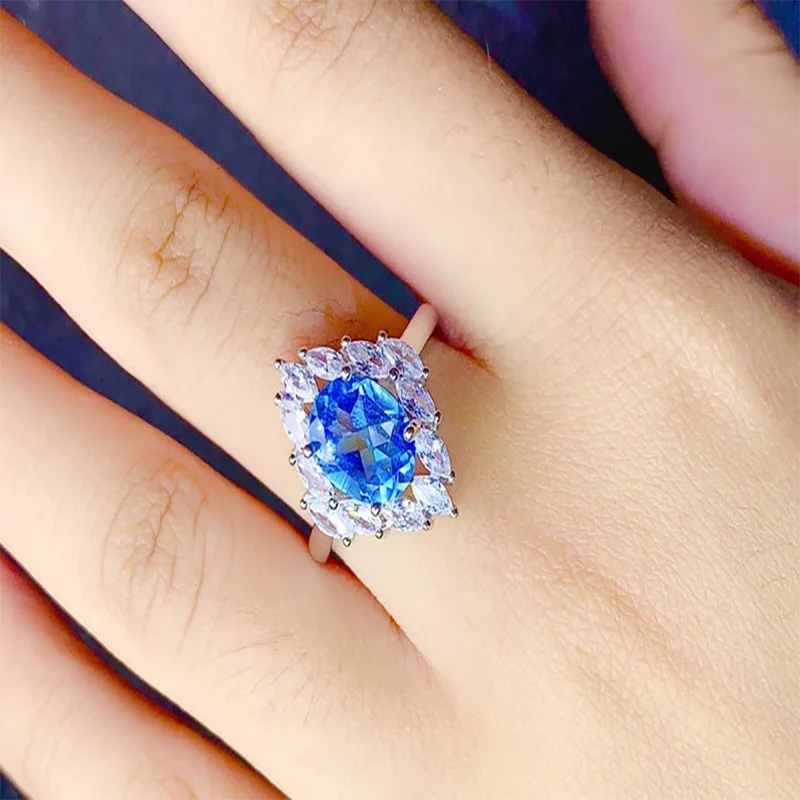 Кольцо женское с квадратным овальным кристаллом, элегантное модное вечернее Ювелирное Украшение с белым цирконием синего цвета, 7*9 мм8*10 мм6*6 мм