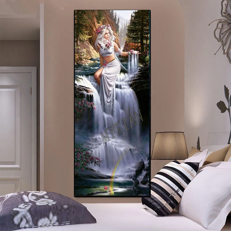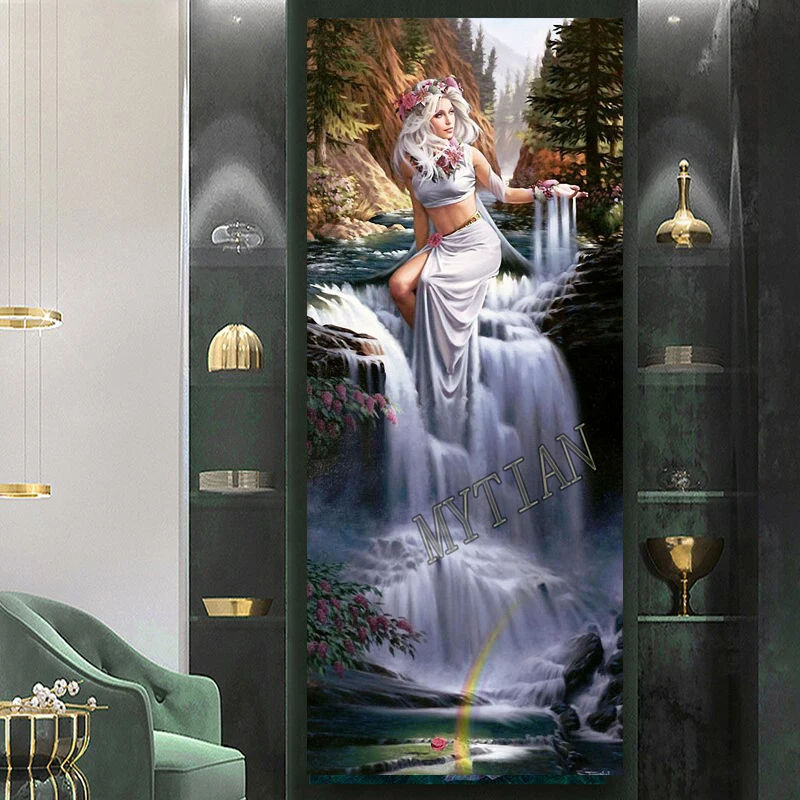 Алмазная картина 5D "сделай сам", квадратнаякруглая, сказочное искусство, водопад, богиня, Набор для вышивки крестиком, мозаика, домашний декор