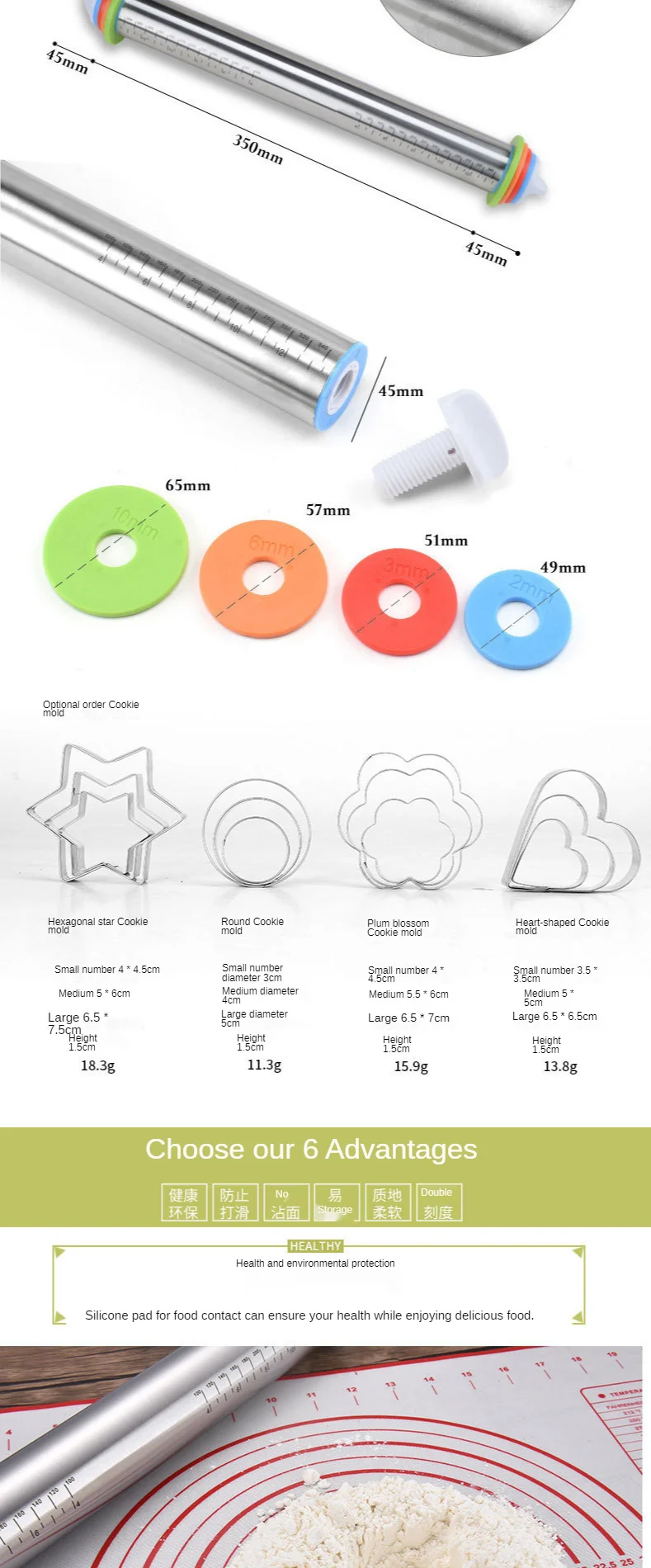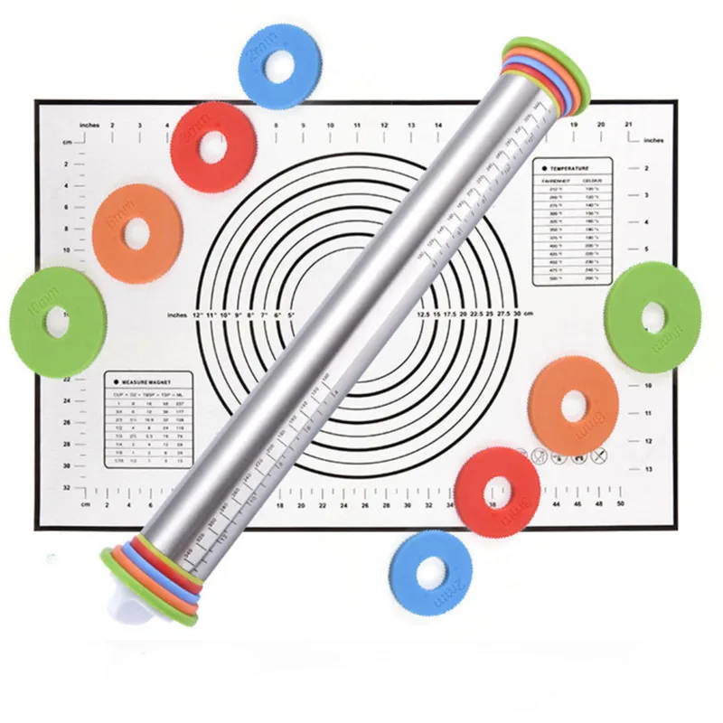 17 дюймов Регулируемый Нержавеющаясталь Скалка Fondant (сахарная) миксер для теста коврик силиконовый коврик для выпечки теста ролик Торт Пицца выпечка для выпечки Инструменты