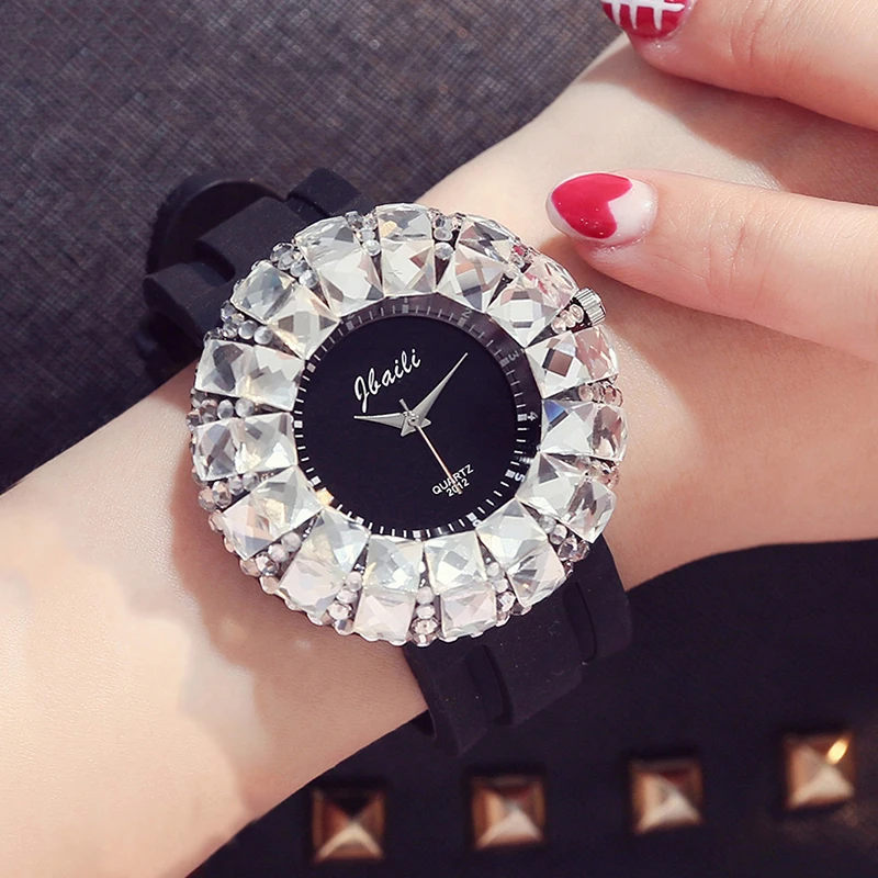 Женские часы Мягкая силиконовая лента с украшением в виде кристаллов кварцевые часы для женщин, на каждый день, часы для девушек, с большим алмазом, Стиль девушка Relogio Feminino