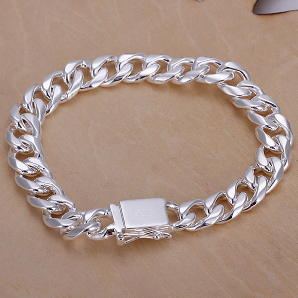 Браслет из стерлингового серебра 925 пробы с квадратной пряжкой для мужчин, ширина 10 мм, толщина 20 см