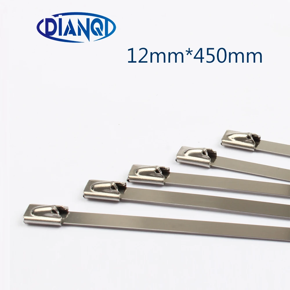 12 мм x 450 мм 12*450 мм 12*450 мм фиксации самоблокирующимся Нержавеющаясталь провода Кабельные стяжки с встроенной функцией спуска затвора с завязками, обувь на молнии с ремешком вокруг Галстуки 201 304 316