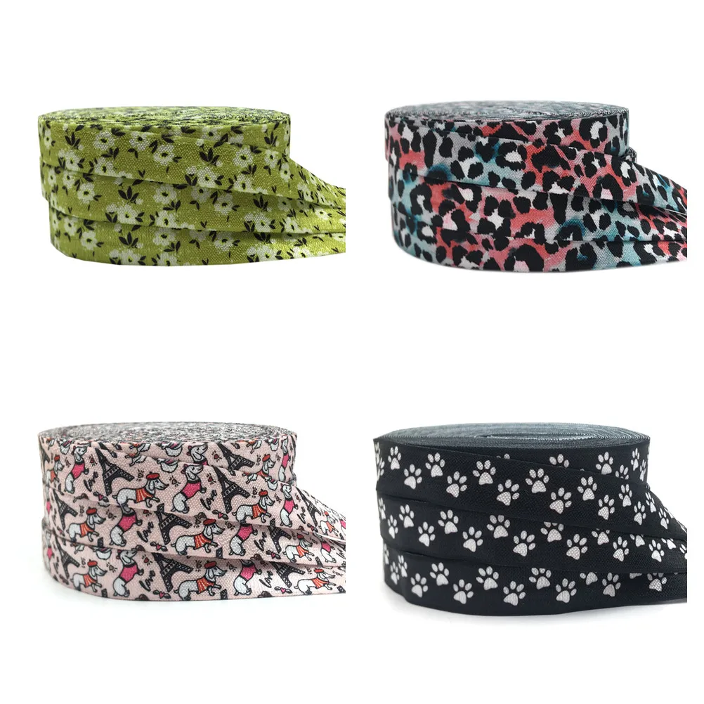 10 лет 16 мм Леопардовый цветок медведь Лапа Печати складки над Эластичной Лентой DIY волос