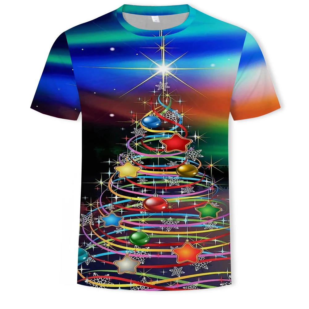 Футболка мужская, летняя, свободная, с 3D-принтом в виде рождественской атмосферы, с коротким рукавом, 2021